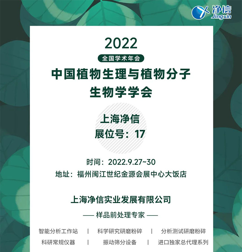 上海凈信誠摯邀請各位專家、老師及學(xué)者相聚魅力福州中國植物生理與植物分子生物學(xué)學(xué)會2022全國學(xué)術(shù)年會,加強(qiáng)植物生物學(xué)領(lǐng)域的交流與合作!現(xiàn)場有精美禮品和專業(yè)團(tuán)隊解惑答疑,期待您的到來!